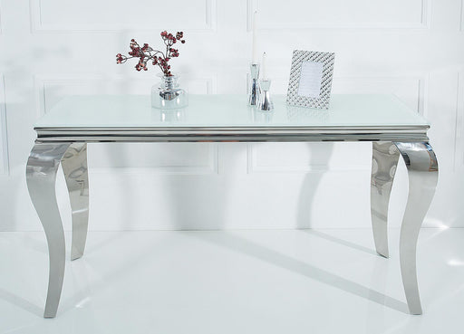 Console BAROQUE Chrome plateau en verre blanc 110x50x85 cm