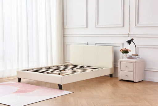Afficher tous les détailsLit 2 places 160x200 cm MELBOURNE simili cuir avec sommier intégré blanc