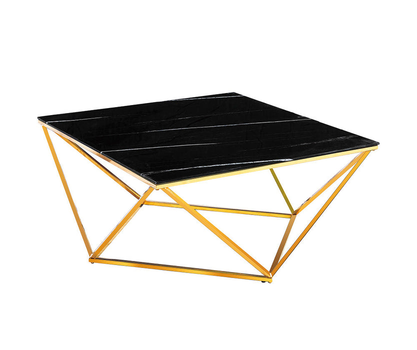Table Basse ALINA Gold plateau en verre trempé 80x80x45 cm marbré noir