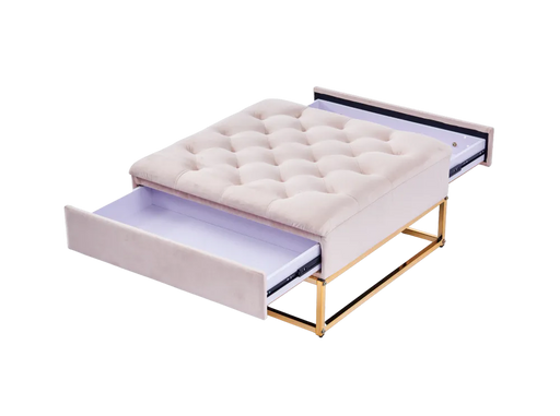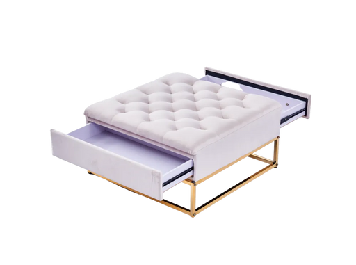 Table Basse rangements TIROIRS plateau velours capitonné beige