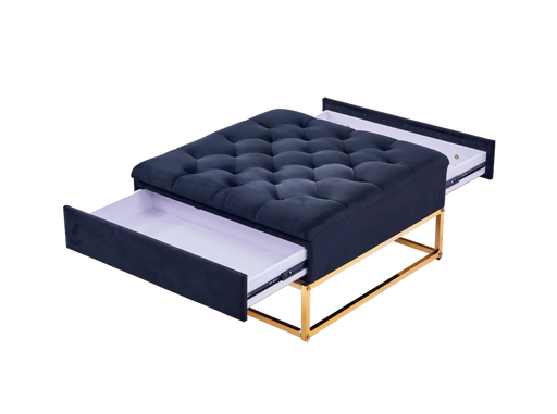 Table Basse rangements TIROIRS plateau velours capitonné noir
