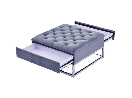 Table Basse rangements TIROIRS plateau velours capitonné gris