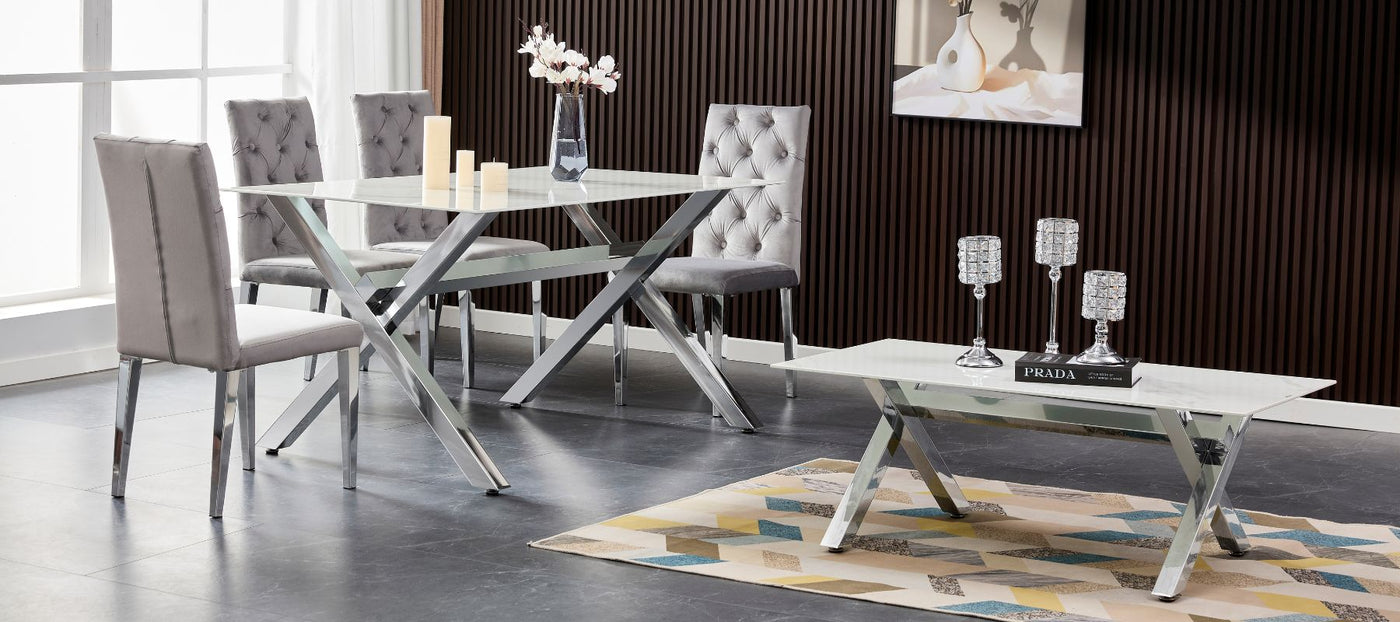 Afficher tous les détailsTable à manger BAROQUE chrome résine blanche 150x90x75 cm